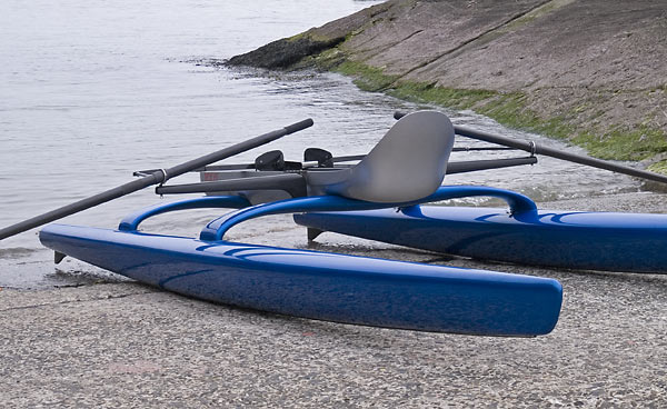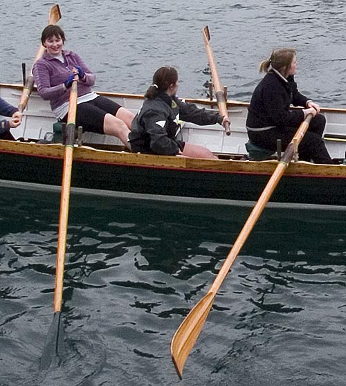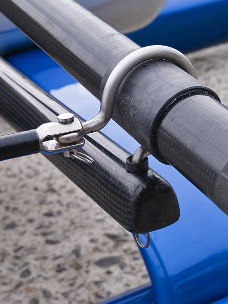 23 May 2006 In an effort to try and understand the 'gearing' question better, I decided to draw the power stroke (catch to perpendicular) for a regular sculling boat and the ROCAT. Jake felt that the ROCAT stroke was considerably shorter than his coastal scull but, on measuring the two strokes, there was only 50mm in it. On his return to Southampton, Jake sent an analysis of his ROCAT row. Following a detailed critique of the ROCAT stroke he said, Have a look at the drawing to see how high the gearing is for the ROCAT power stroke it's a .pdf, so I hope you can open it OK. I really must get some blog or forum software going, because this would make a good discussion. But, meanwhile, please email your observations ... CL ... a drawing of the power strokes of a regular sculling boat and the ROCAT |